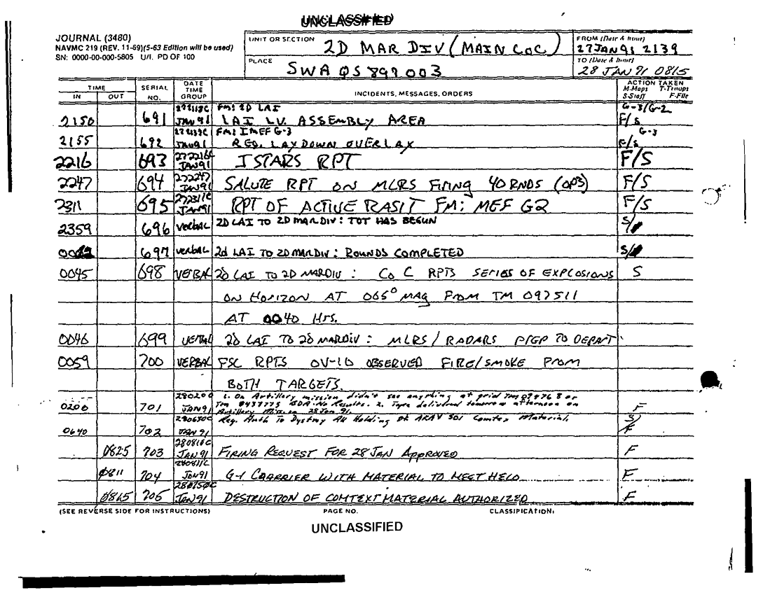 Subject = JOURNAL 2D MARDIV SUPPORTING DOCS SEP 90