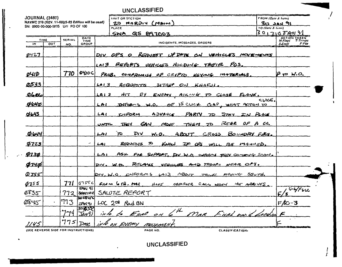 Subject = JOURNAL 2D MARDIV SUPPORTING DOCS SEP 90