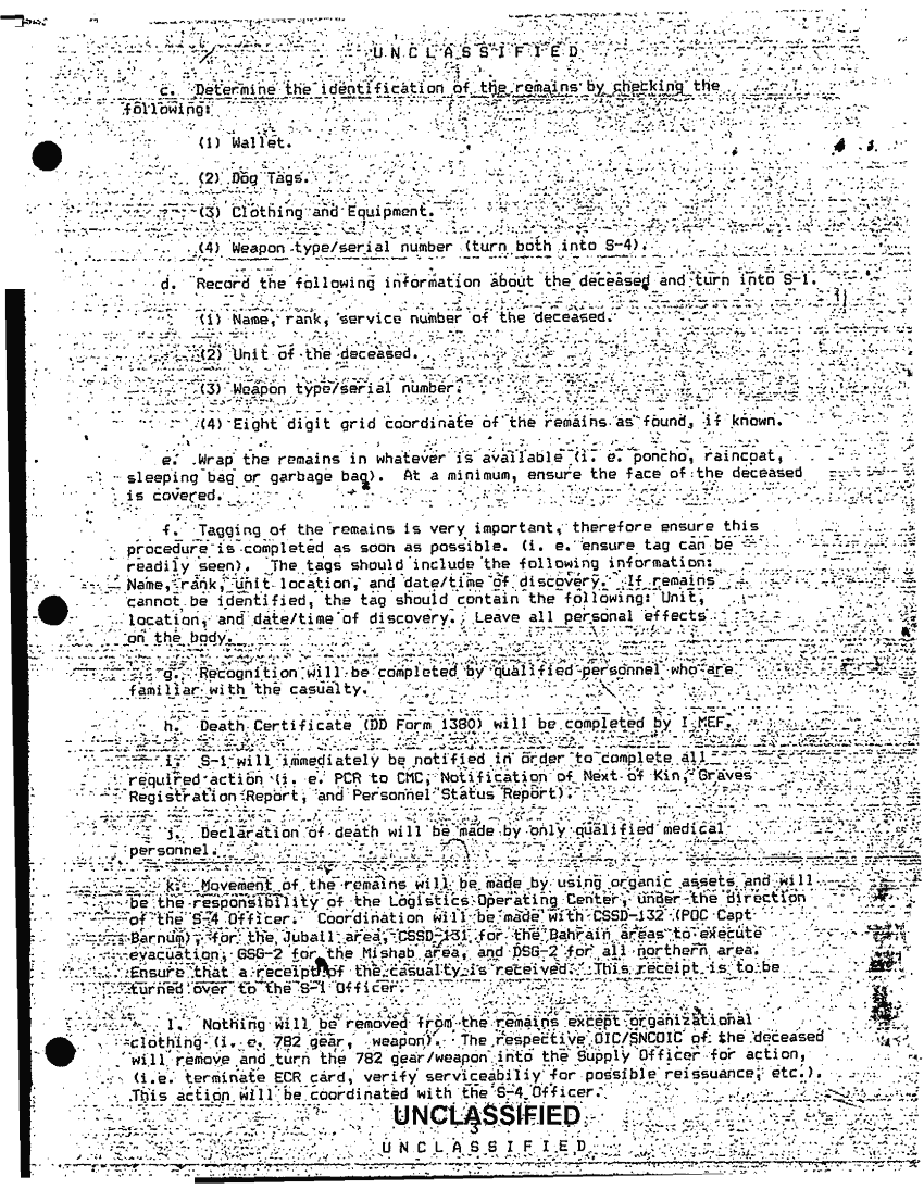Document 6 f:/Week-51/BX600101/MWCS 38 FRAGO 1 91 16 FEB 91/annex e casualty rpt handling remains to frago 1 91:0324971049124