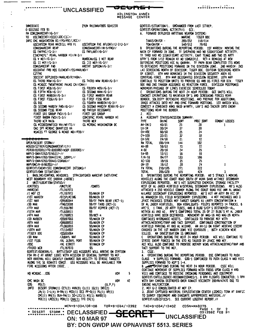 Document 2 f:/Week-52/BX600124/HQMC - DESERT STORM MESSAGE FILE MAR 91 CNA 7625/sitrep comusmarcent 3 feb 91:0324971049136