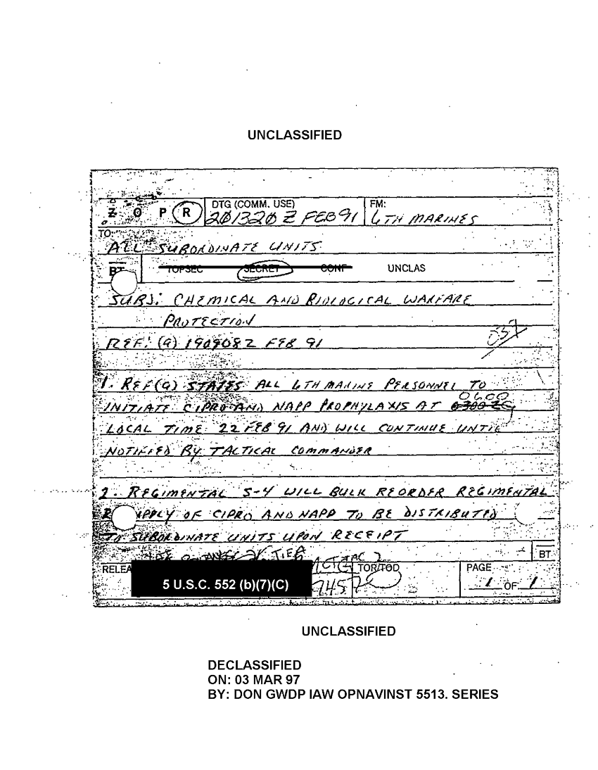 Document 1 f:/Week-51/BX600094/MESSAGES SENT 20 FEB 91/radio message traffic chem and bio warfare 20 feb 91:0324971049147