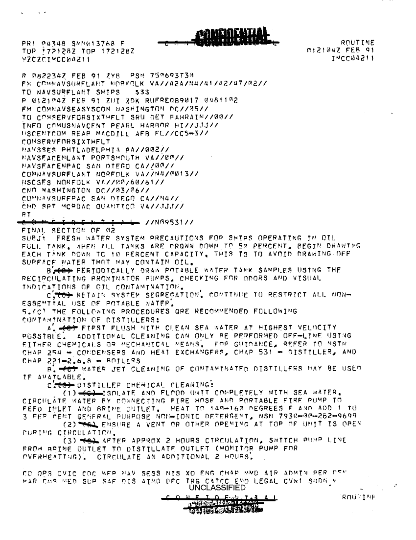 Document 5 f:/Week-33/BX300011/MESSAGE FILE FOR 8 FEB 1991 CNA 2707/fresh water precau for ships operating in oil sa:0906961534495