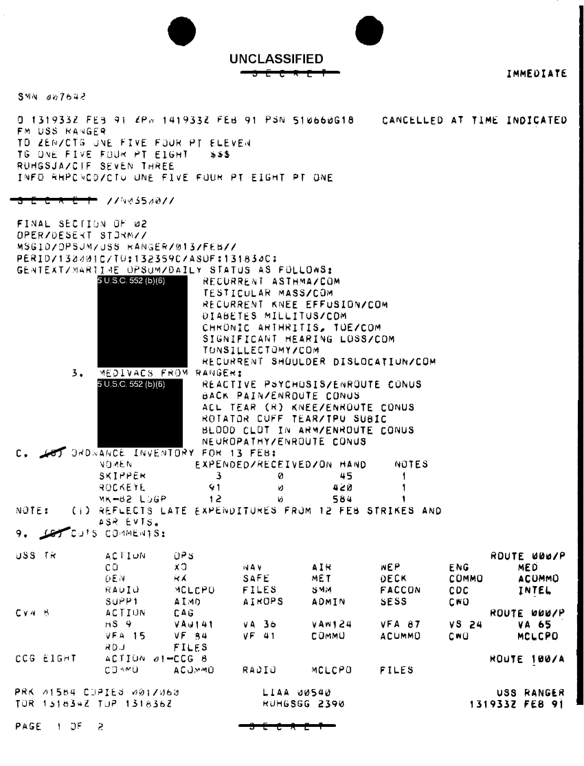 Document 5 f:/Week-36/BX300058/FOLDER 9 MESSAGE FILES FOR 10-14 FEB 1991 CNA 2744 2 OF2/opsum uss ranger 13feb91:100196125226