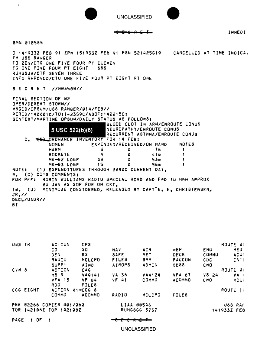 Folder Title = FOLDER 1 MESSAGE FILES FOR 10-14 FEB 1991 CNA 2744 2 OF2