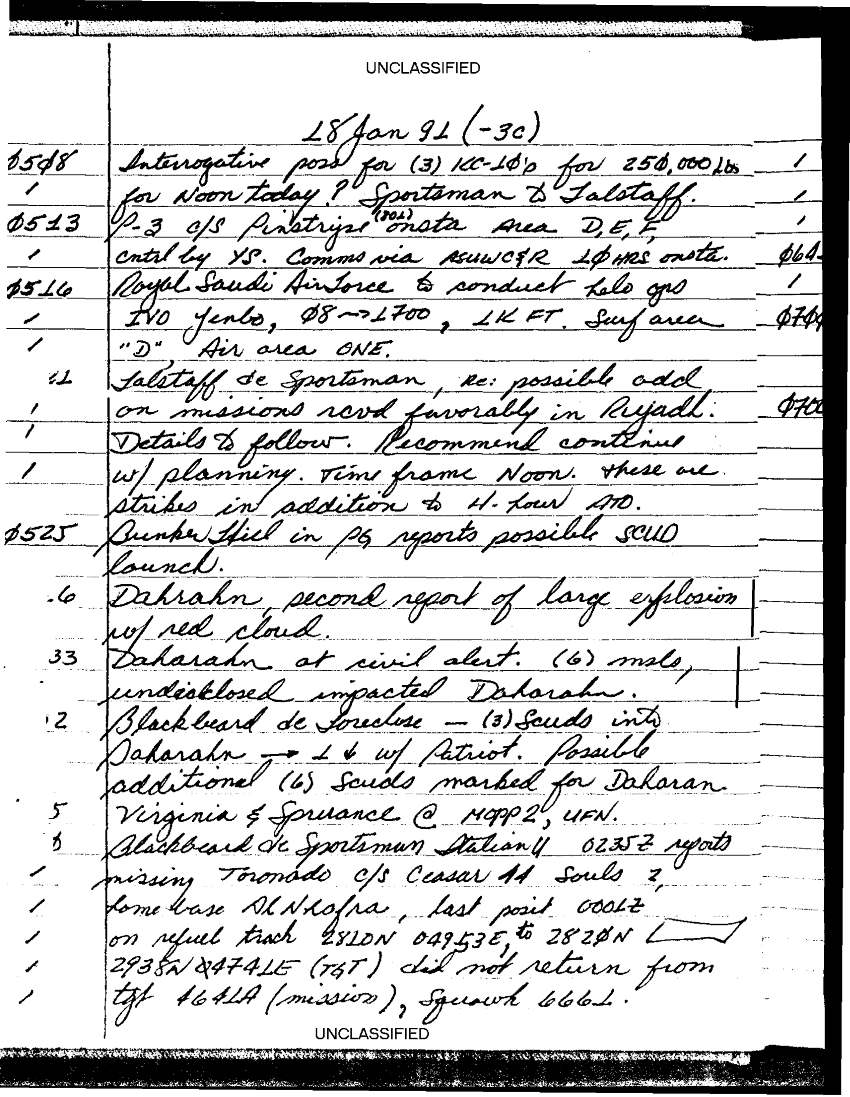 Document 13 f:/Week-33/BX300000/CVW-1 STRIKE CELL LOG 23 JAN - 27 FEB 1991/stao supplemental log record 18 jan 91:1011961541507