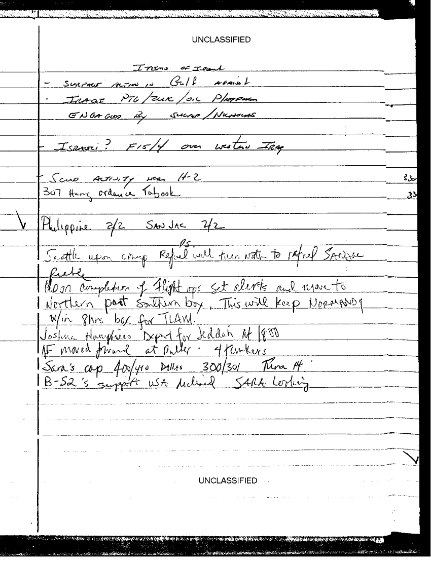 Folder Title = CVW-1 STRIKE CELL LOG 23 JAN - 27 FEB 1991