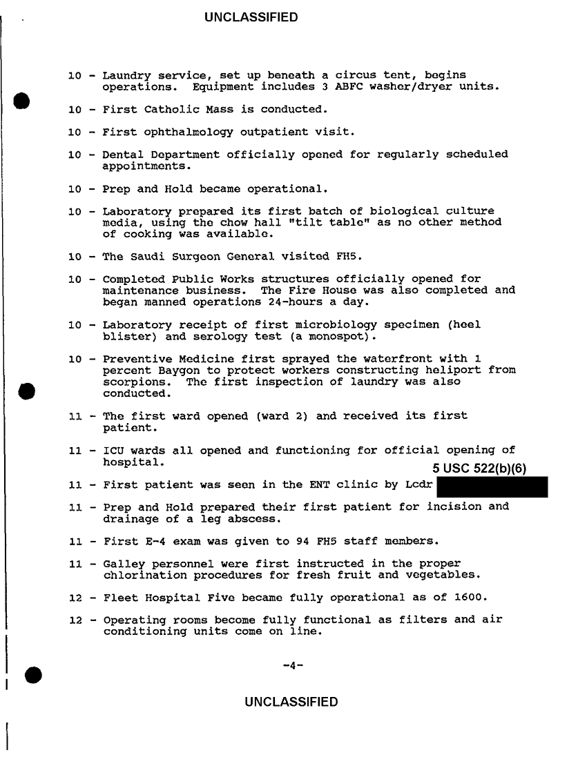 Document 19 f:/Week-36/BX300052/FLEET HOSPITAL WORKING PAPERS VARIOUS SOURCES CNA 2837/flet hospital five chronology 12 mar 91:1018961451358