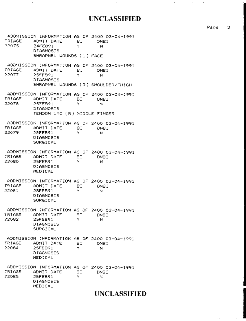 Document 34 f:/Week-42/BX300118/FOLDER 2 - PATIENTS TREATED - AL KHANJAR TRAUMA CENTER MAR 91/admission information as of 2400 03 04 1991:1112:1112961728162