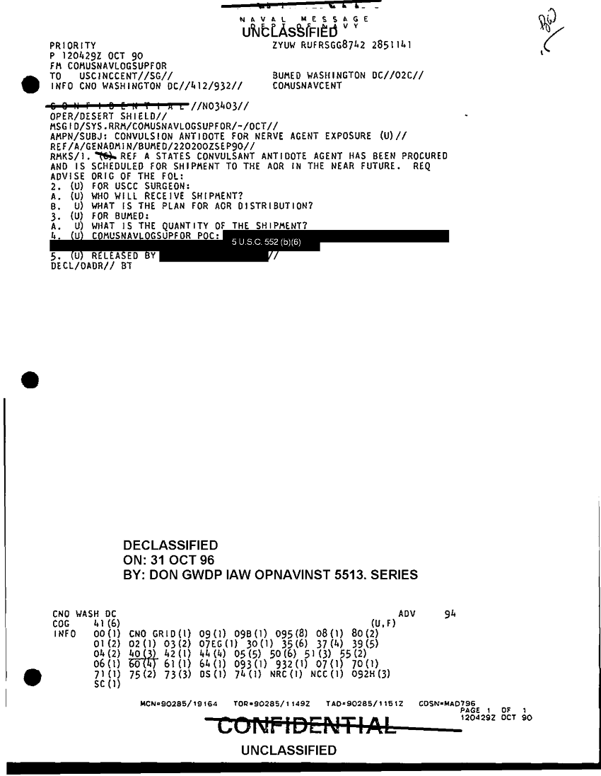 Document 1 f:/Week-41/BX300107/FOLDER MESSAGE CHRONOLOGICAL FILES 20 SEP - 3 NOV 90 12 OF 22/convulsion antidote for nerve agent exposure 12:1112961511583