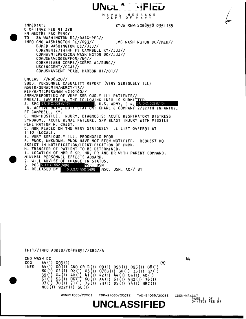Document 1 f:/Week-41/BX300098/FOLDER MESSAGE CHONOLOGICAL FILES 26 JAN - 12 FEB 91 10 OF 18/personnel casualty report very seriously ill 4:1112961511594