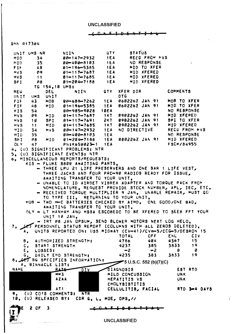 Folder Title = FOLDER 13 MESSAGE FILES FOR 10 JAN 1991 CNA 2736 1OF2