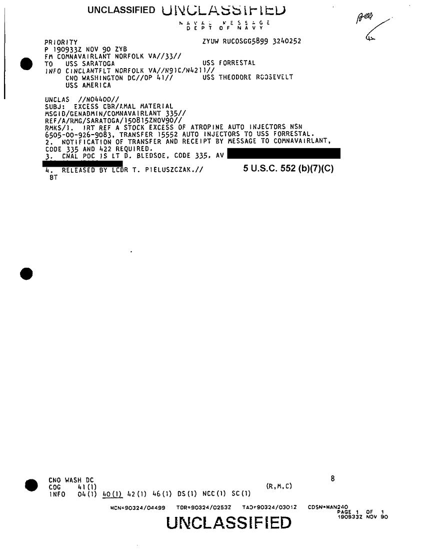 Document 1 f:/Week-41/BX300109/FOLDER MESSAGE CHRONOLOGICAL FILES 14 NOV - DEC 90 12 OF 26/excess cbr amal material 19 nov 90:12179609581429