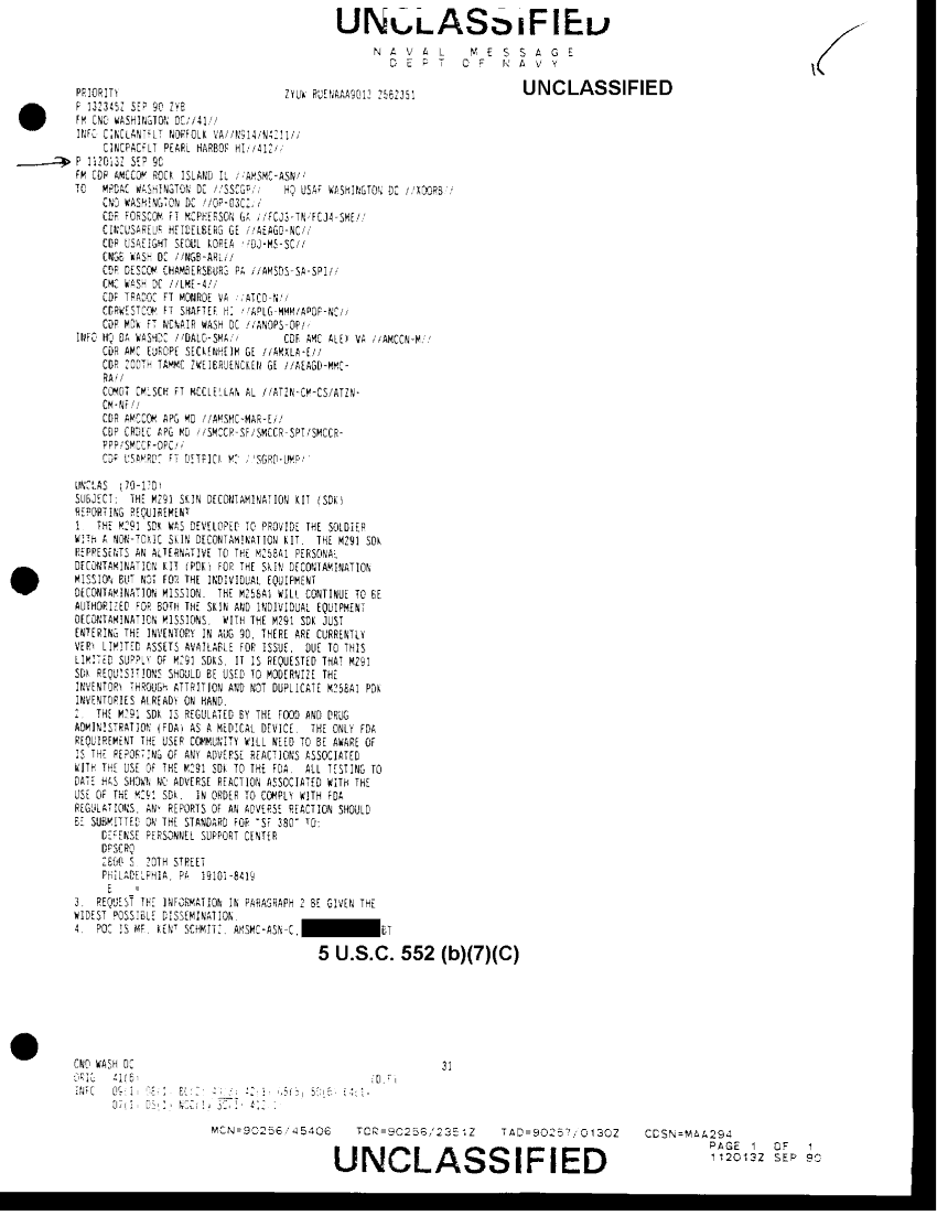 Document 1 f:/Week-41/BX300110/FOLDER MESSAGE CHRONOLOGICAL FILES 7 AUG - 19 SEP 90 22 OF 27/m291 skin decontaminatio kit 11sept90:12179609581631