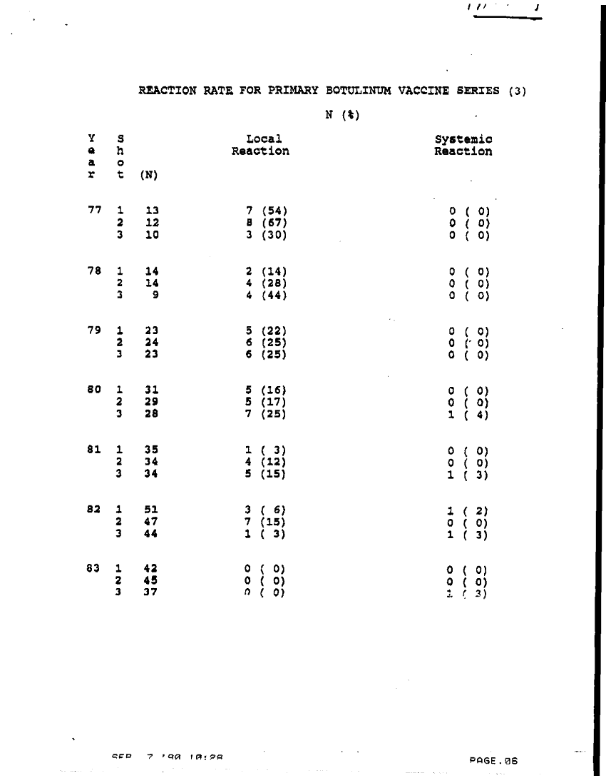 Document 8 f:/Week-36/BX003204/INFO PAPER PENTAVALENT ABCDE BOTULINUM TOXOID/reaction rates for primary 2 vaccine series:0920961557127