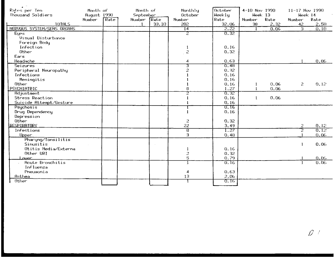 Document 20 f:/Week-36/BX003204/OPERATION DESERT SHIELD DESERT STORM MEDICAL DATA/hospital morbidity surveillance:100196133419