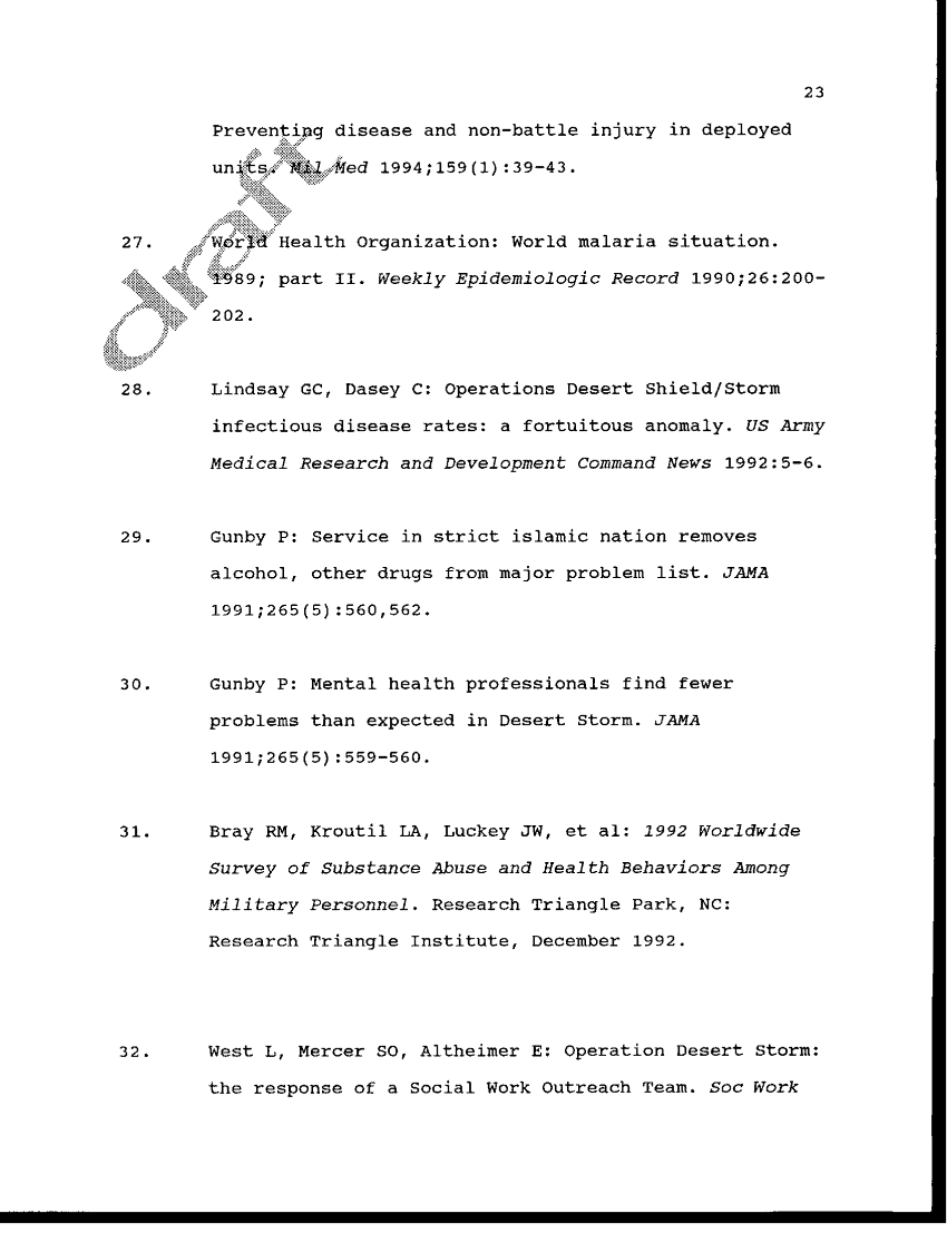 Document 26 f:/Week-36/BX003204/SURVEY OF OUTPATIENT VISITS DURING OPERATION DESERT SHIELD/a survey of outpatient visits in a us army forwa:100196133421