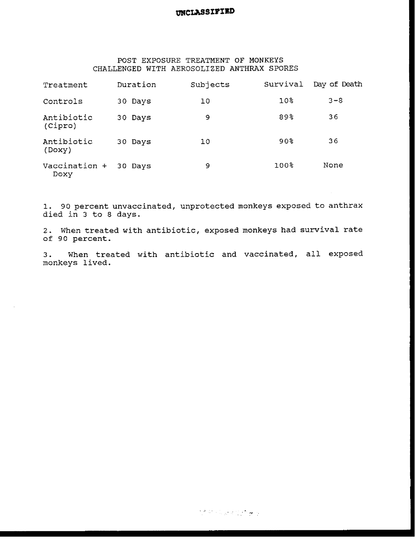 Document 2 f:/Week-36/BX003201/POST EXPOSURE TREATMENT OF MONKEYS CHALLENGED WITH AEROSOLIZED ANTHRAX SPORES/post exposure treatment of monkeys:1004961328519