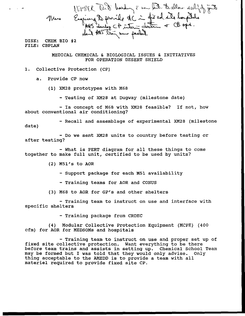 Folder Title = MEDICAL CHEMICAL AND BIOLOGICAL ISSUES AND INITIATIVES FOR OPERATION DESERT STORM