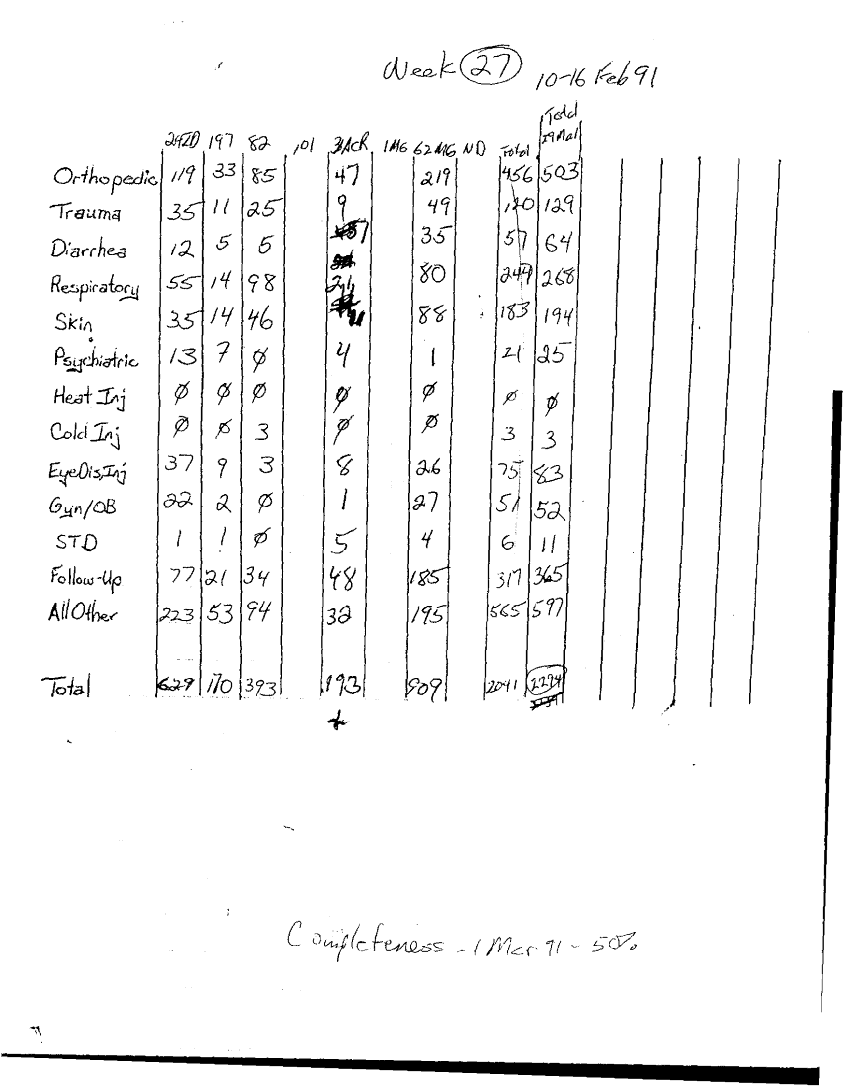 Document 27 f:/Week-36/BX003204/ODS MEDICAL SURVEILLANCE OF XVIII AIRBORNE CORPS/weekly medical surveillance report:100196133412