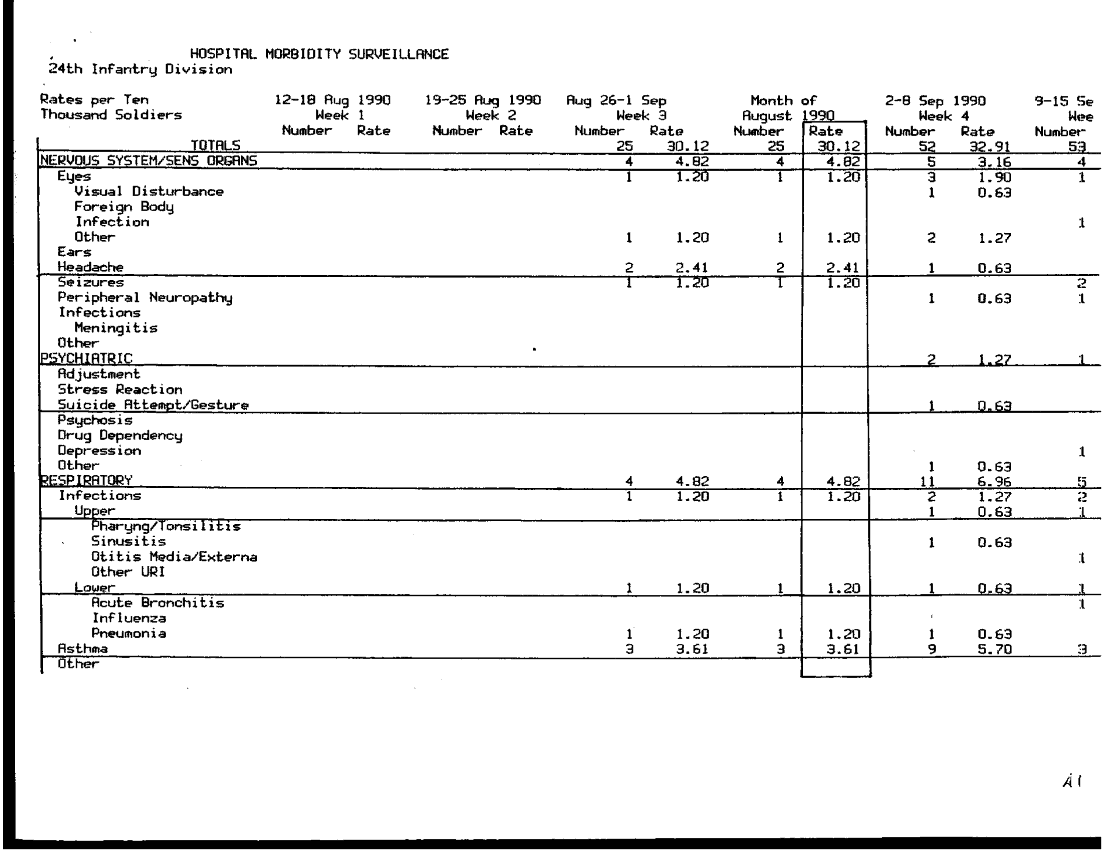 Document 22 f:/Week-36/BX003204/OPERATION DESERT SHIELD DESERT STORM MEDICAL DATA/morbidity surveillance:100196133415