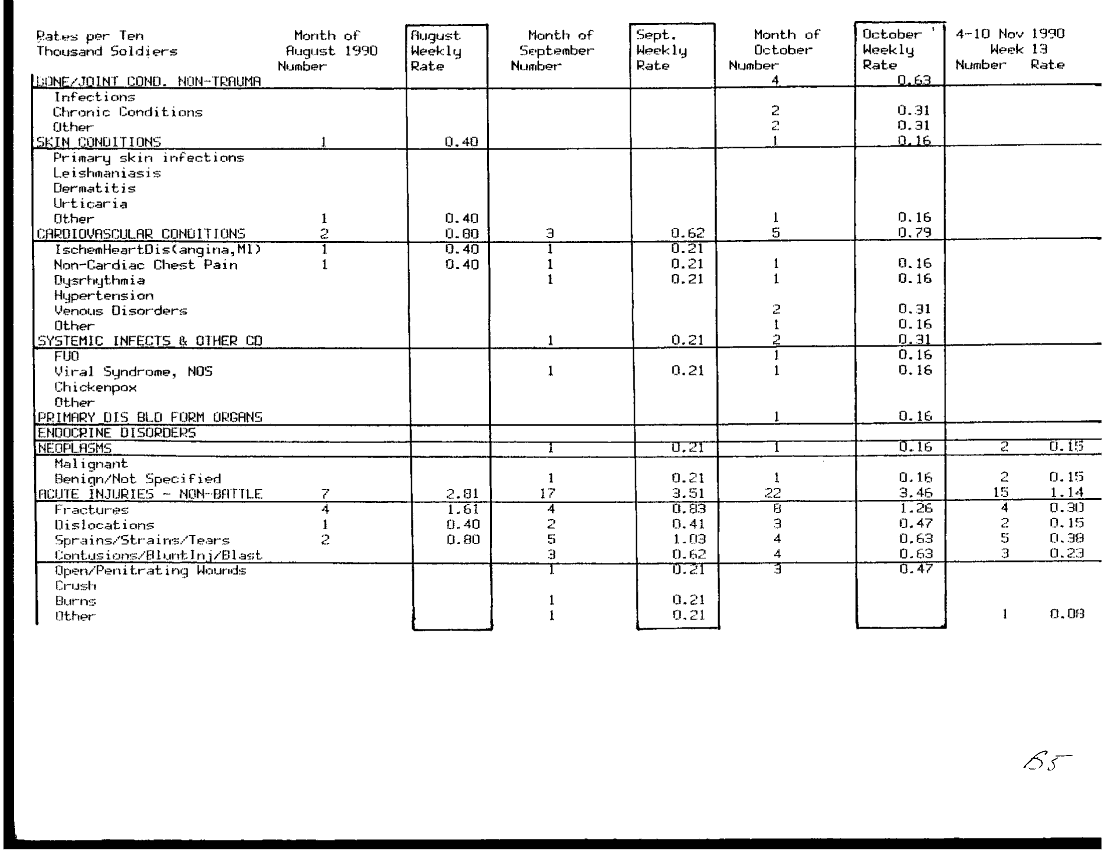 Document 20 f:/Week-36/BX003204/OPERATION DESERT SHIELD DESERT STORM MEDICAL DATA/hospital morbidity surveillance:100196133416