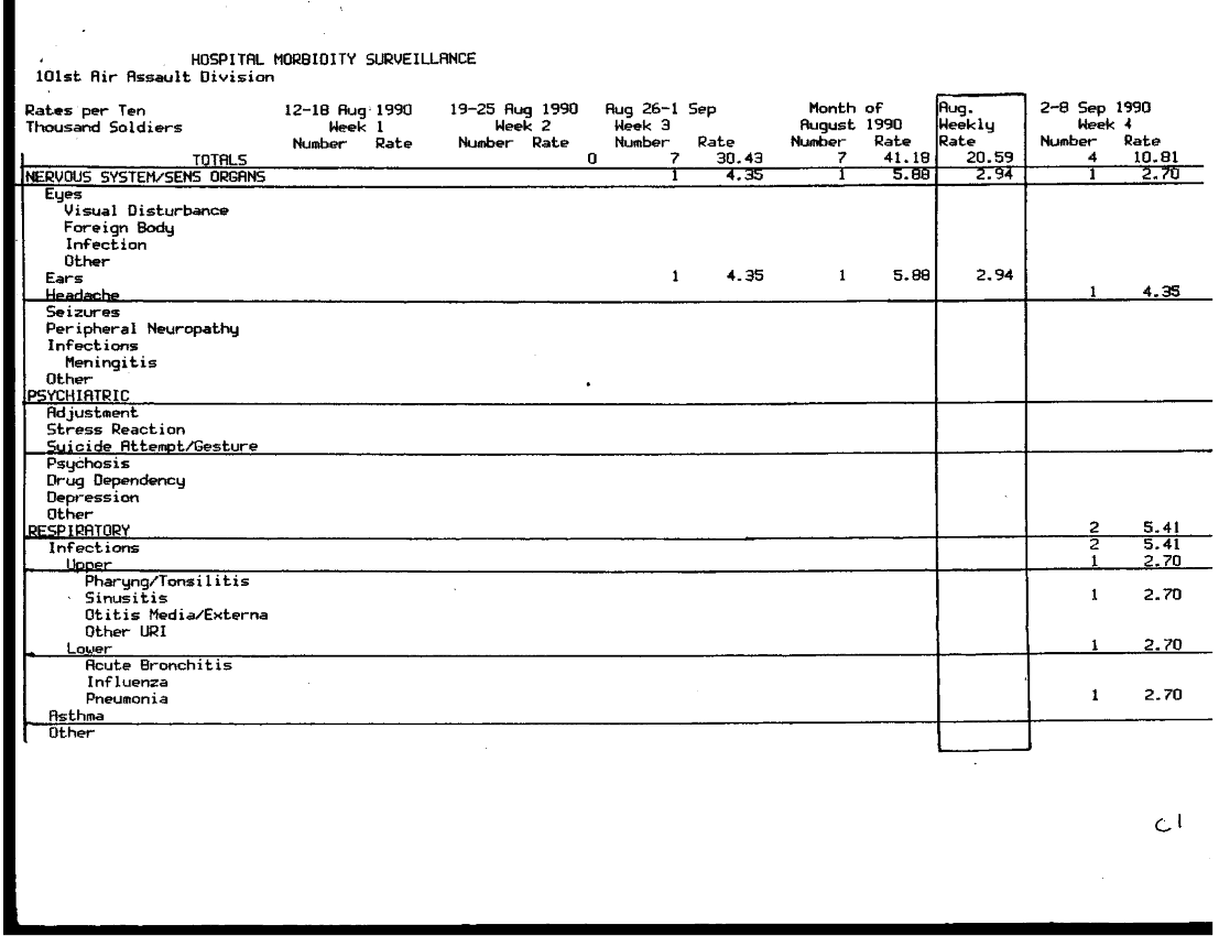 Document 18 f:/Week-36/BX003204/OPERATION DESERT SHIELD DESERT STORM MEDICAL DATA/hospital morbidity surveillance:100196133417