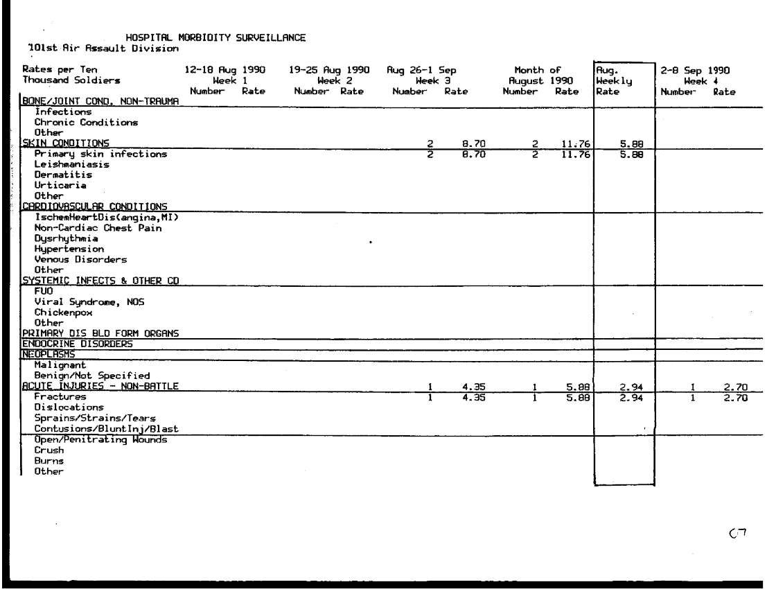 Document 18 f:/Week-36/BX003204/OPERATION DESERT SHIELD DESERT STORM MEDICAL DATA/hospital morbidity surveillance:100196133417