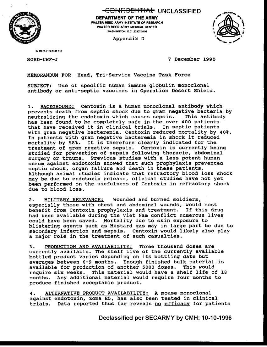 Document 3 f:/Week-36/BX003202/DESERT SHIELD MEDICAL ISSUES REVIEW AND AD HOC WORKING GROUP/use of specific human immune globulin monoclonal:1011961539129