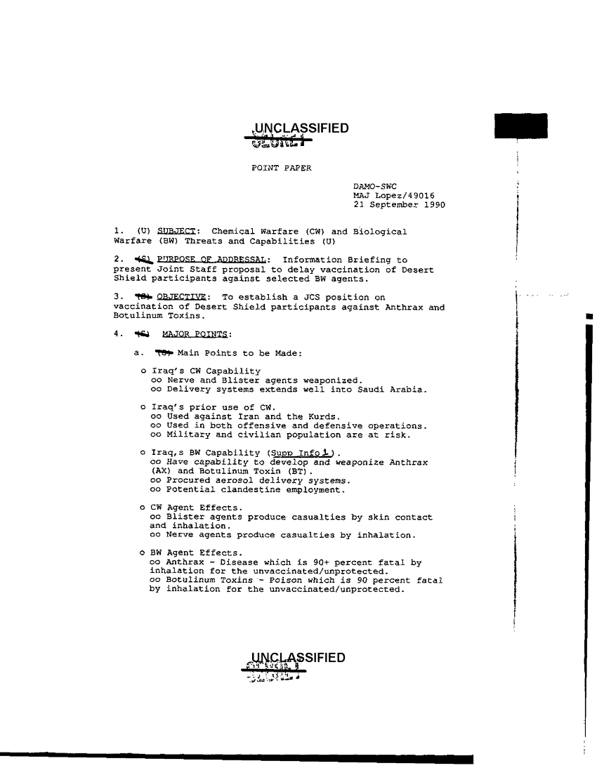 Document 16 f:/Week-36/BX003202/UPDATE ON THE MEDICAL BIOLOGICAL WARFARE -BW- DEFENSE PROGRAM/point papers 15jan91:10189613544417