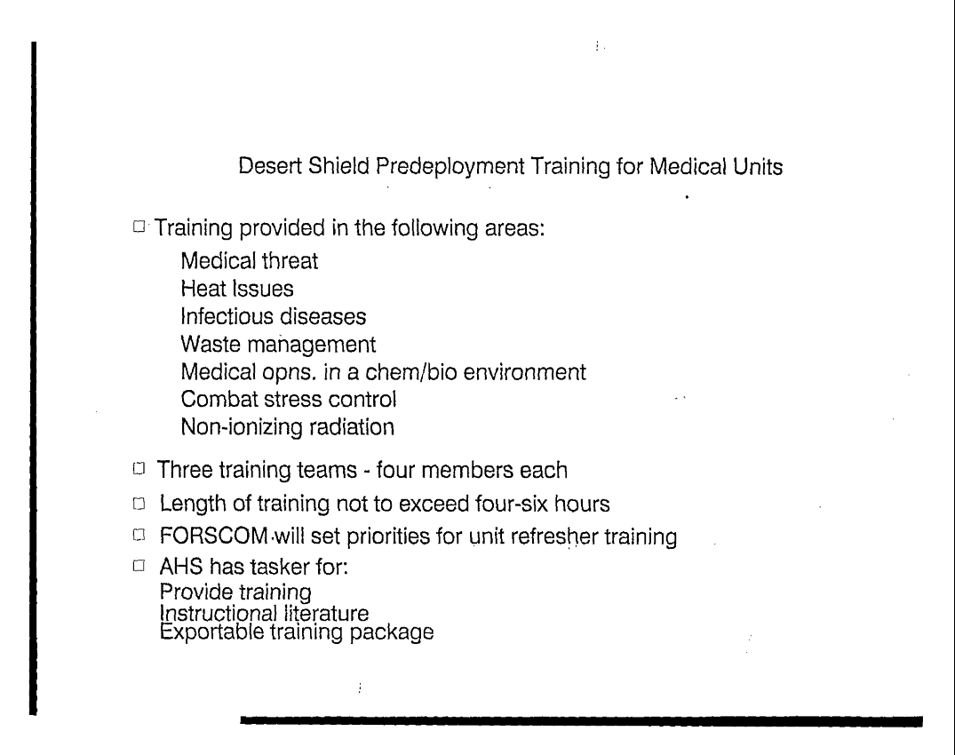 Subject = DESERT SHIELD PREDEPLOYMENT TRAINING FOR MEDICAL