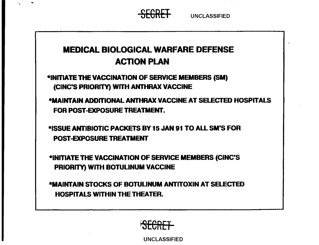 Document 11 f:/Week-36/BX003202/UPDATE ON BIOLOGICAL WARFARE VACCINATION AND PRODUCTION ISSUES/medical biological warfare defense 10 dec 90:11089615091631