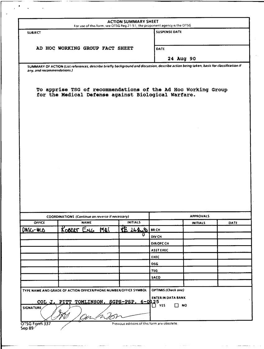 Document 7 f:/Week-36/BX003203/RECOMMENDATIONS OF THE AD HOC GROUP FOR THE MEDICAL DEFENSE AGAINST BIOLOGICAL WARFARE/recommendations of the ad hoc working group:11089615091832