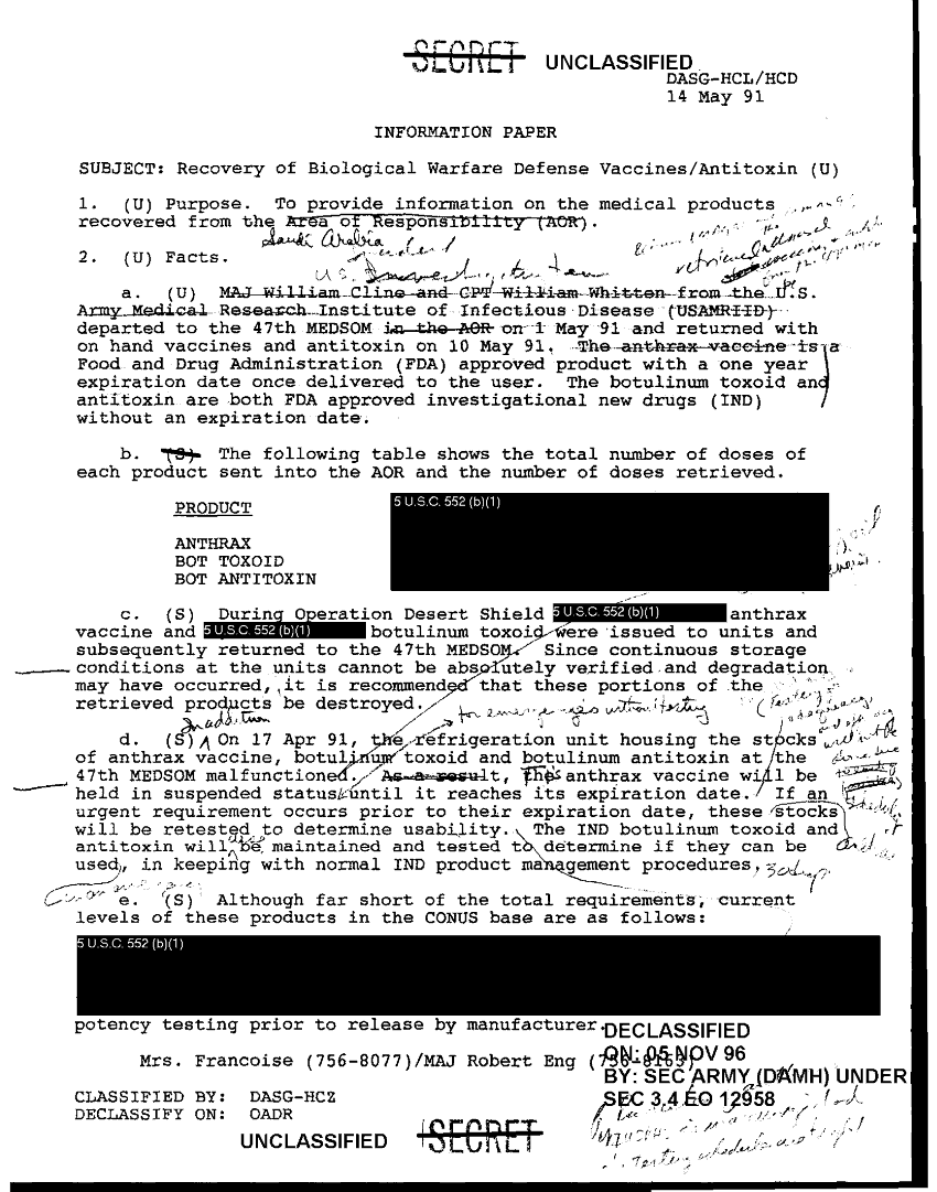 Subject = RECOVERY OF BIOLOGICAL WARFARE DEFENSE VACCINES