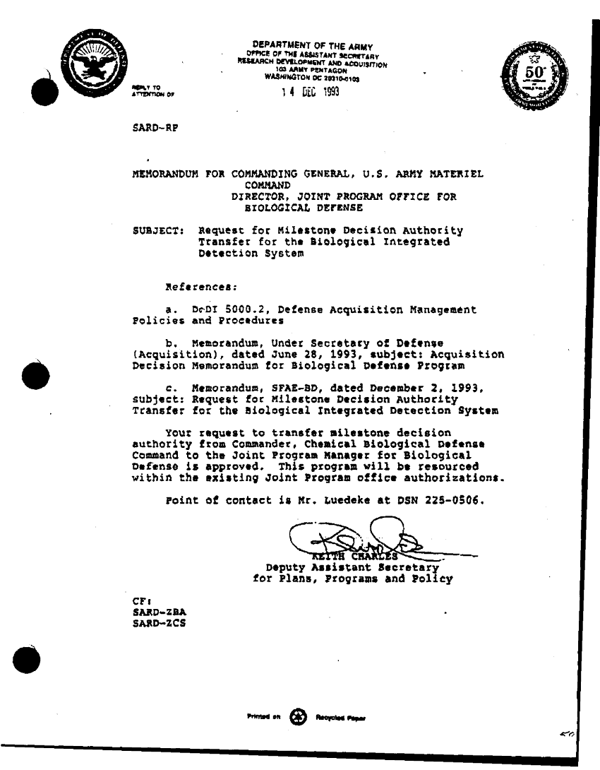 Document 1 f:/Week-36/BX003203/REQUEST FOR MILESTONE DECISION AUTHORITY TRANSFER/request for milestone decision authority transfe:11089615092235