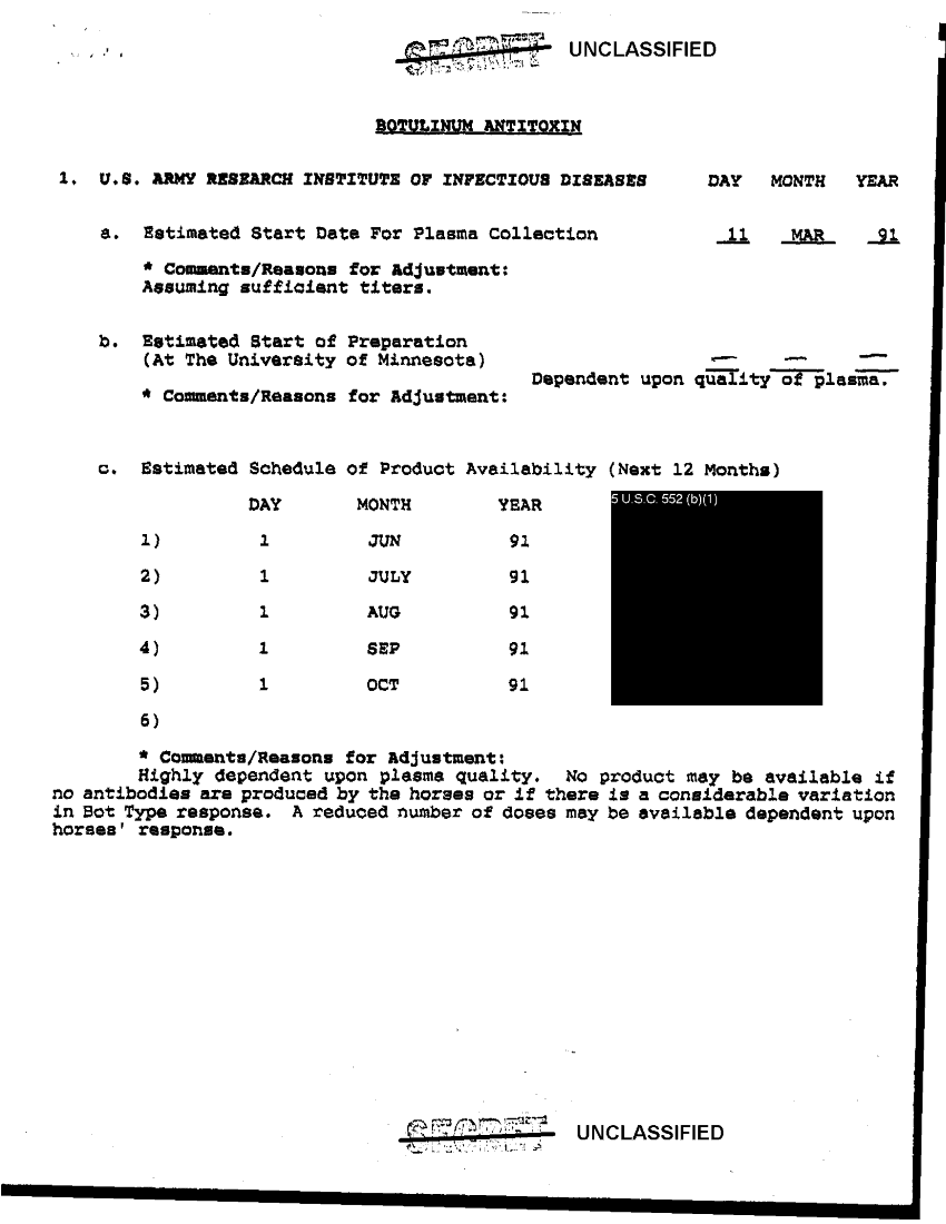 Subject = BW VACCINE ANTITOXIN PRODUCTION 14 JAN 91