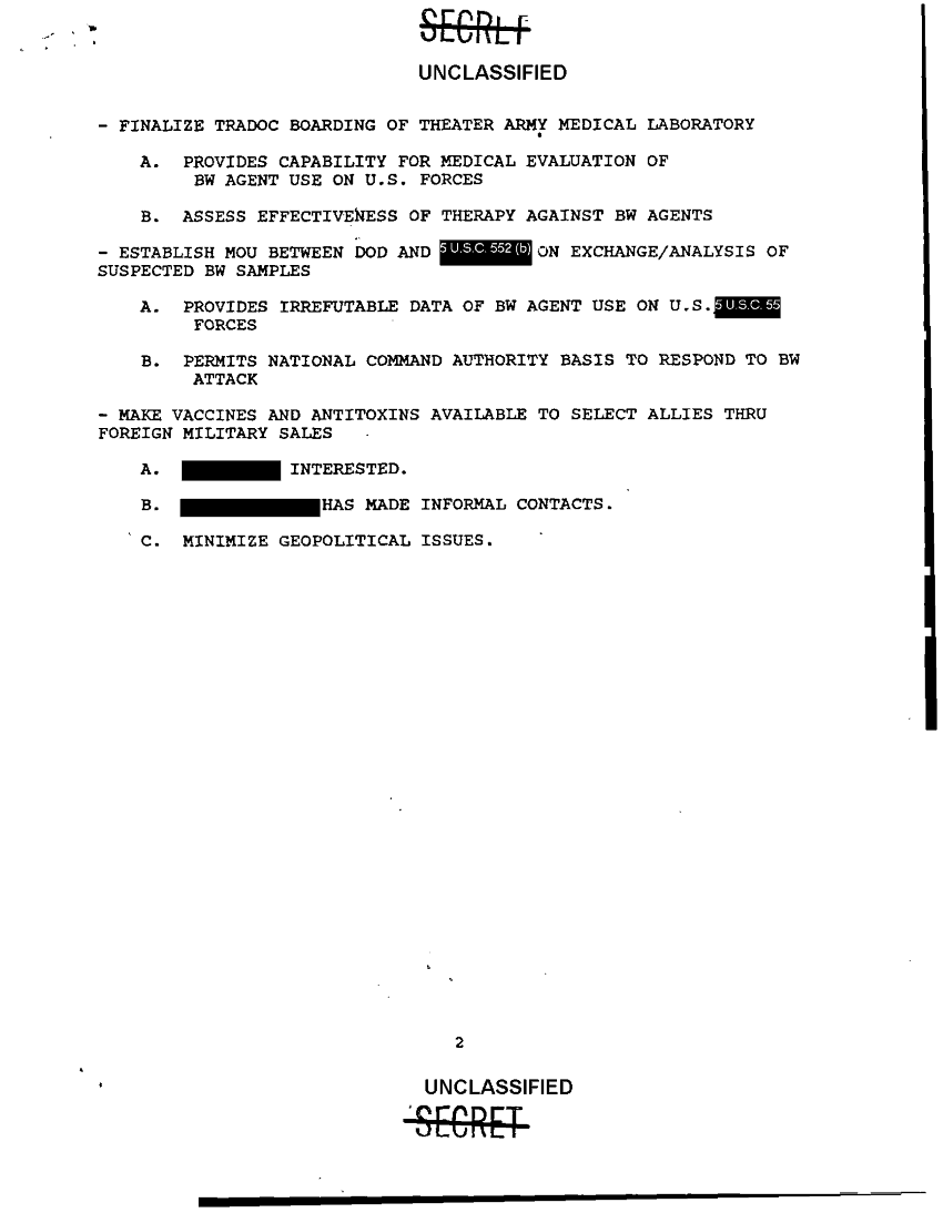 Subject = MEDICAL DEFENSE AGAINST BIOLOGICAL MATERIAL
