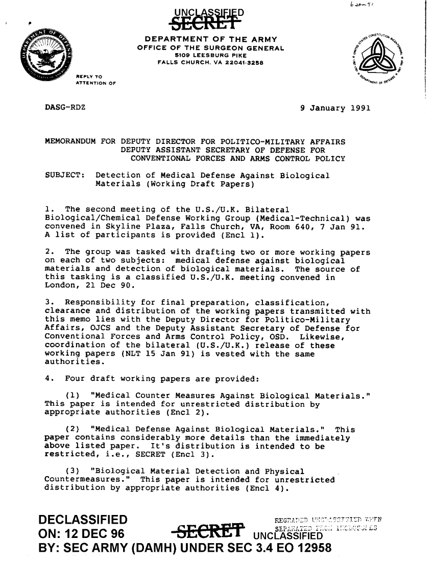 Subject = DETECTION OF MEDICAL DEFENSE AGAINST BIOLOGICAL