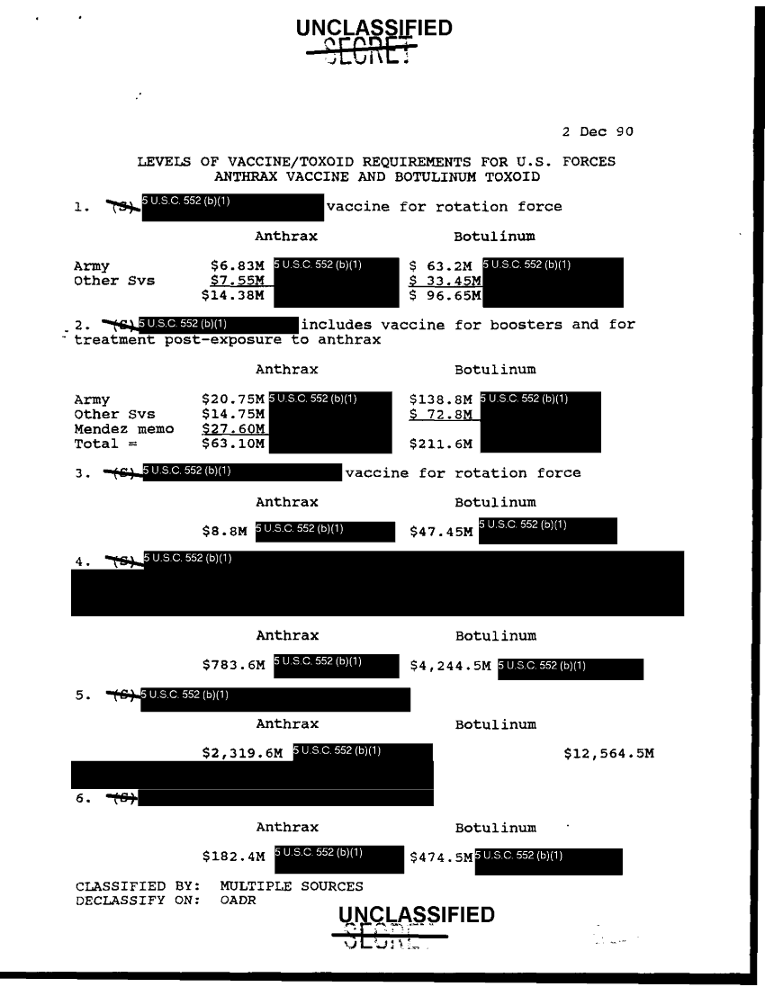 Subject = JUSTIFICATION CALCULATION FUNDING FOR ANTHRAX AN