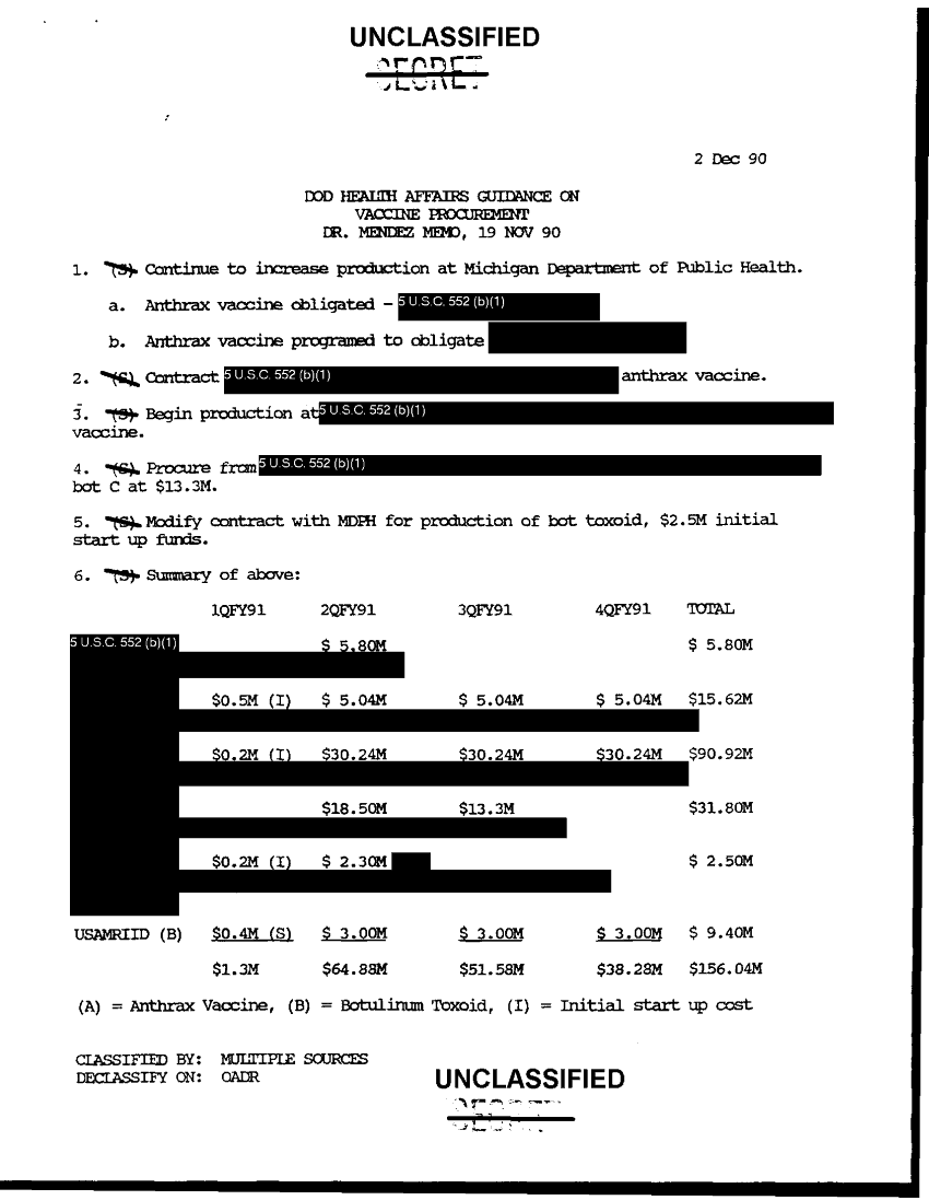 Subject = JUSTIFICATION CALCULATION FUNDING FOR ANTHRAX AN
