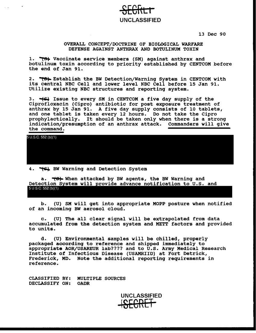Subject = BIOLOGICAL WARFARE DEFENSE AGAINST ANTHRAX AND B