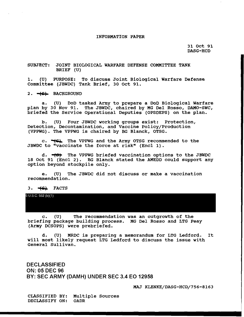 Document 1 f:/Week-36/BX003203/JOINT BIOLOGICAL WARFARE DEFENSE COMITTEE TANK BRIEF/joint biological warfare defense committee tank :12179609290563