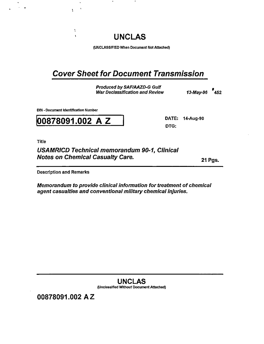 Document 22 f:/Week-36/BX003205/CLINICAL NOTES ON CHEMICAL CASUALTY CARE/usamricd tech memo 90 1 clinical notes on chem c:12249609312728