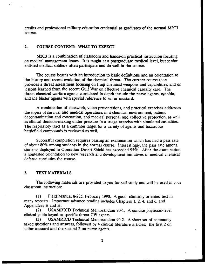 Subject = STATUS OF USAMRDC CHEMICAL CASUALTY CARE