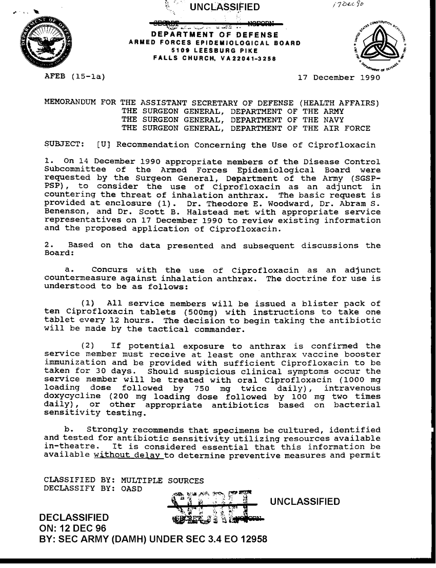 Document 2 f:/Week-36/BX003201/RECOMMENTATION CONCERNING THE USE OF CIPROFLOXACIN/recommendation concerning the use of ciprofloxac:12249609312933