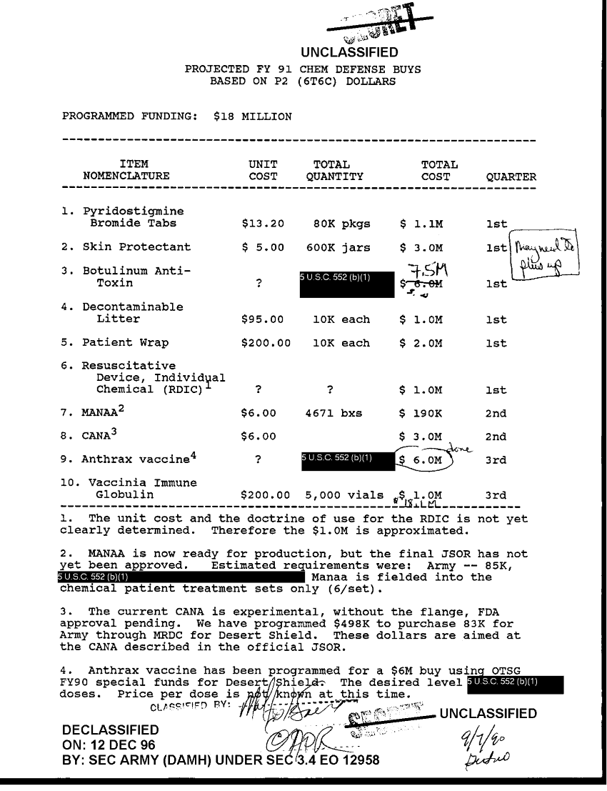 Document 1 f:/Week-36/BX003201/PROJECTED FY 91 CHEM DEFENSE BUYS/projected fy 91 chem defense buys based on p2 6t:12249609313035