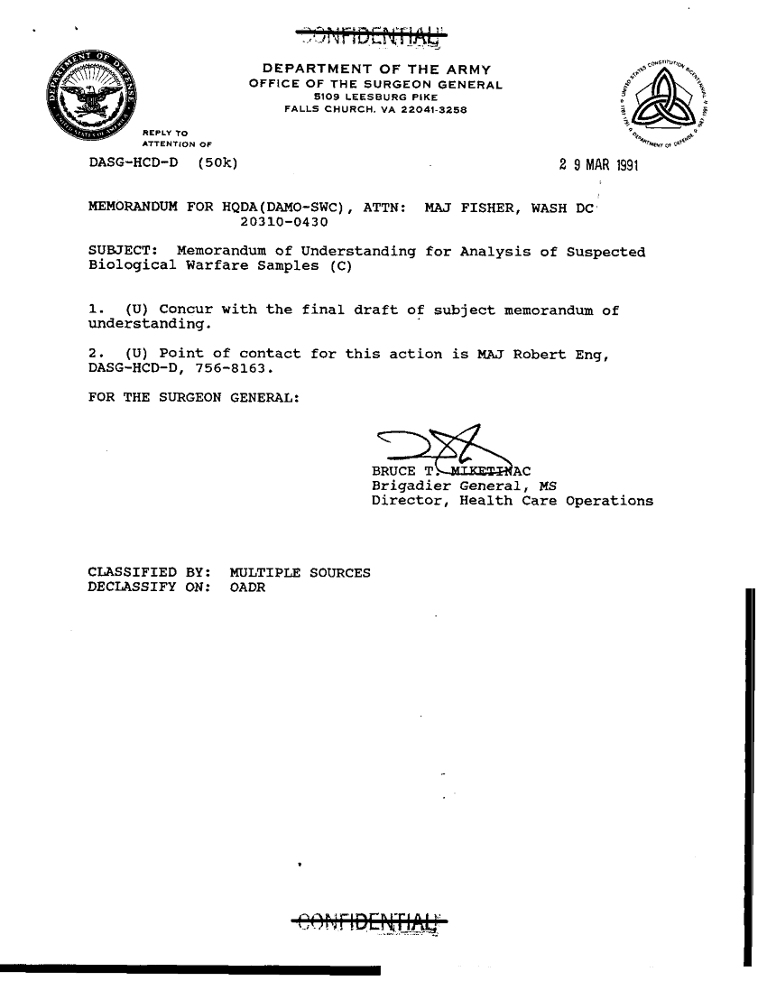 Folder Title = MOU FOR ANALYSIS OF SUSPECTED BW SAMPLES