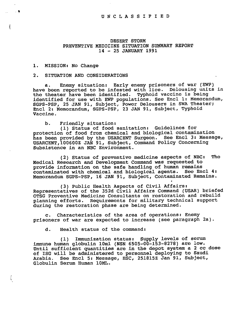 Document 2 f:/Week-36/BX003205/PREVENTIVE MEDICINE SITUATION SUMMARY REPORT/preventive med sitrep summary rpt 14 25 jan 91:12249609314464
