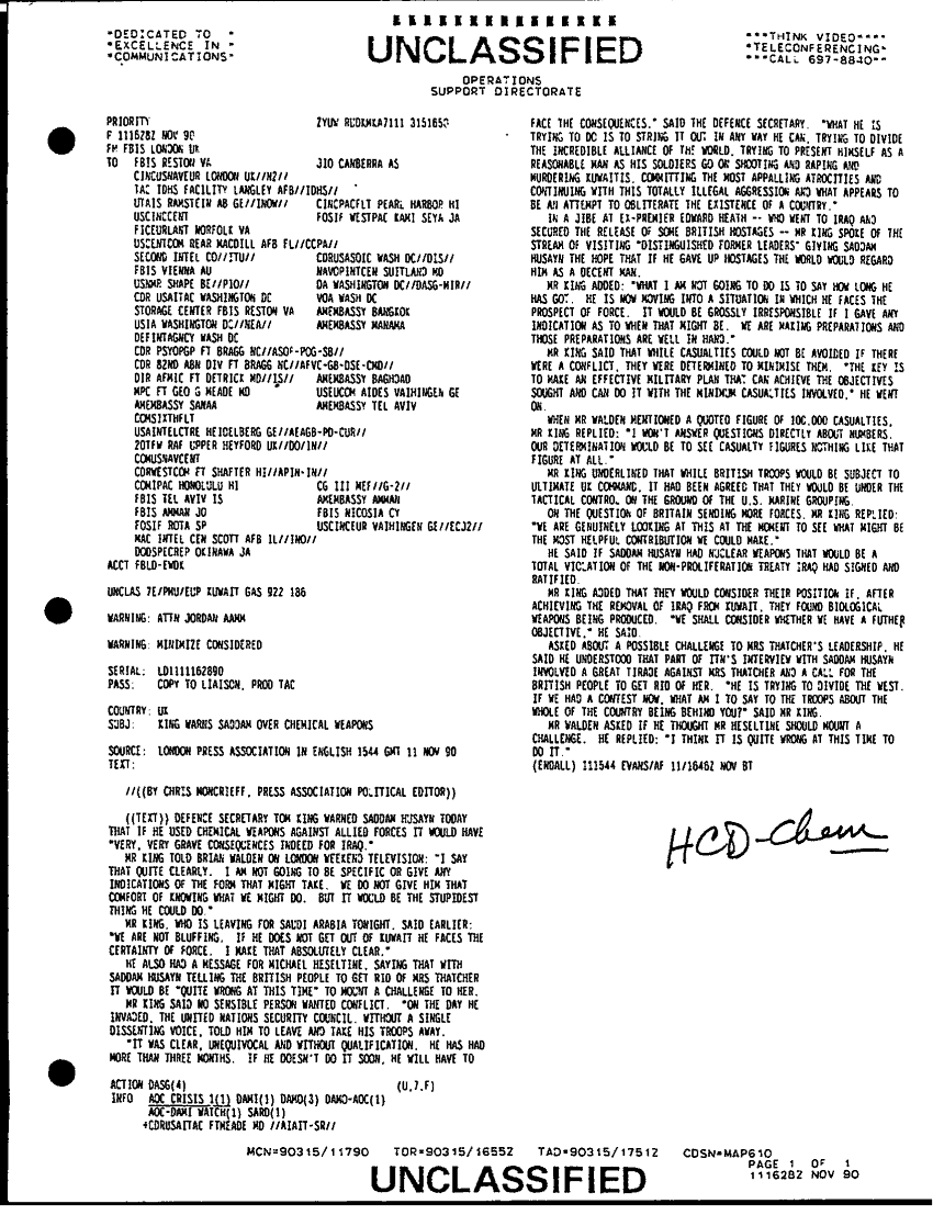 Folder Title = KING WARNS SADDAM OVER CHEMICAL WEAPONS