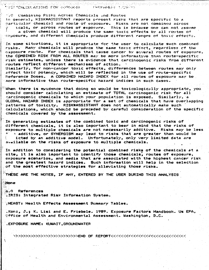 Document 10 f:/Week-36/BX003205/EXPOSURE CALCULATIONS/concentration chem environmental media covered i:01029715471618