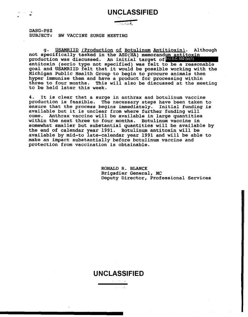 Subject = BW VACCINE SURGE MEETING 6 DEC 90